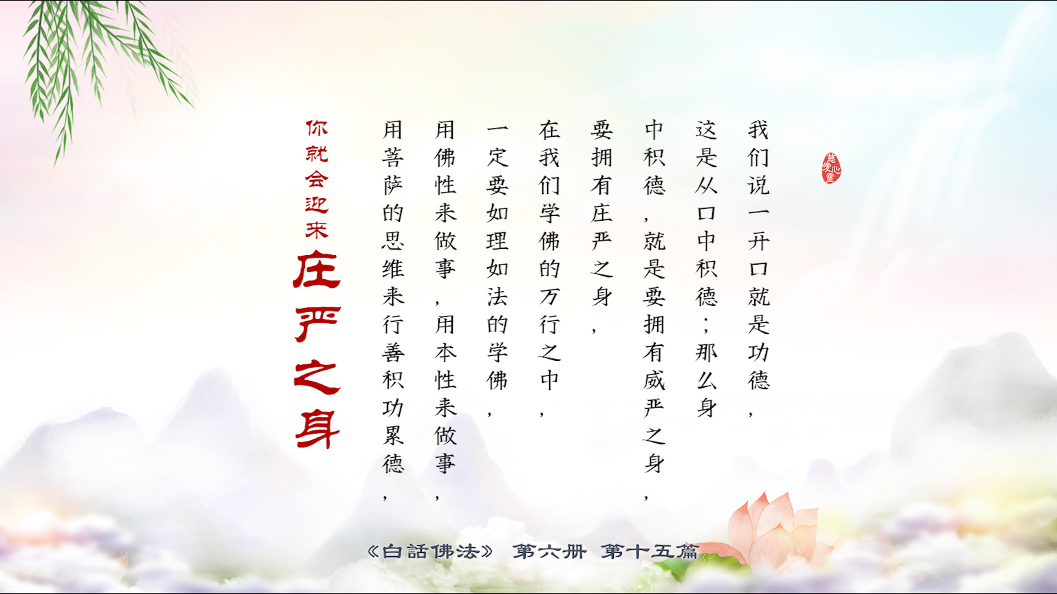 不限会员 6-15-24 我们说一开口就是功德,这是从口中积德;那么身中积德,就是要拥有威严之身,要拥有庄严之身,在我们学佛的万行之中,一定要如理如法的学佛,用佛性来做事,【图】