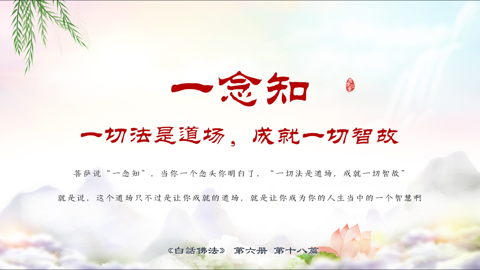 不限会员 6-18-7菩萨说“一念知”,当你一个念头你明白了,“一切法是道场,成就一切智故”,就是说,这个道场只不过是让你成就的道场,就是让你成为你的人生当中的一个智慧啊。【图】