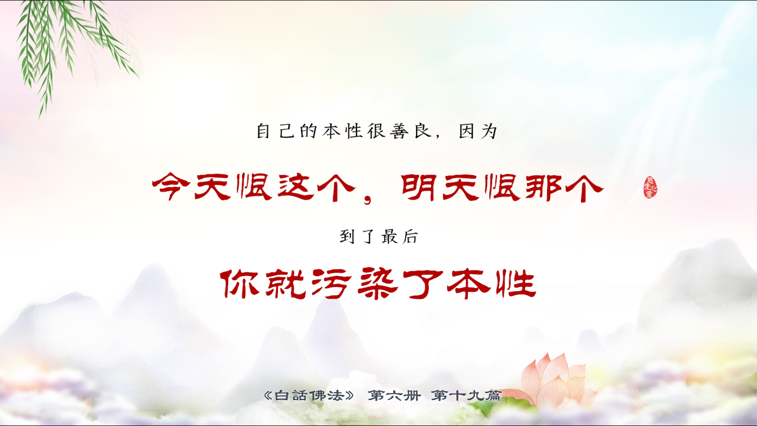 不限会员 6-19-2自己的本性很善良,因为今天恨这个,明天恨那个,到了最后,你就污染了本性。如果心中有恨,这个人是不会学好佛,也不能成佛的,因为佛菩萨的心中只有爱,只有慈和悲【图】