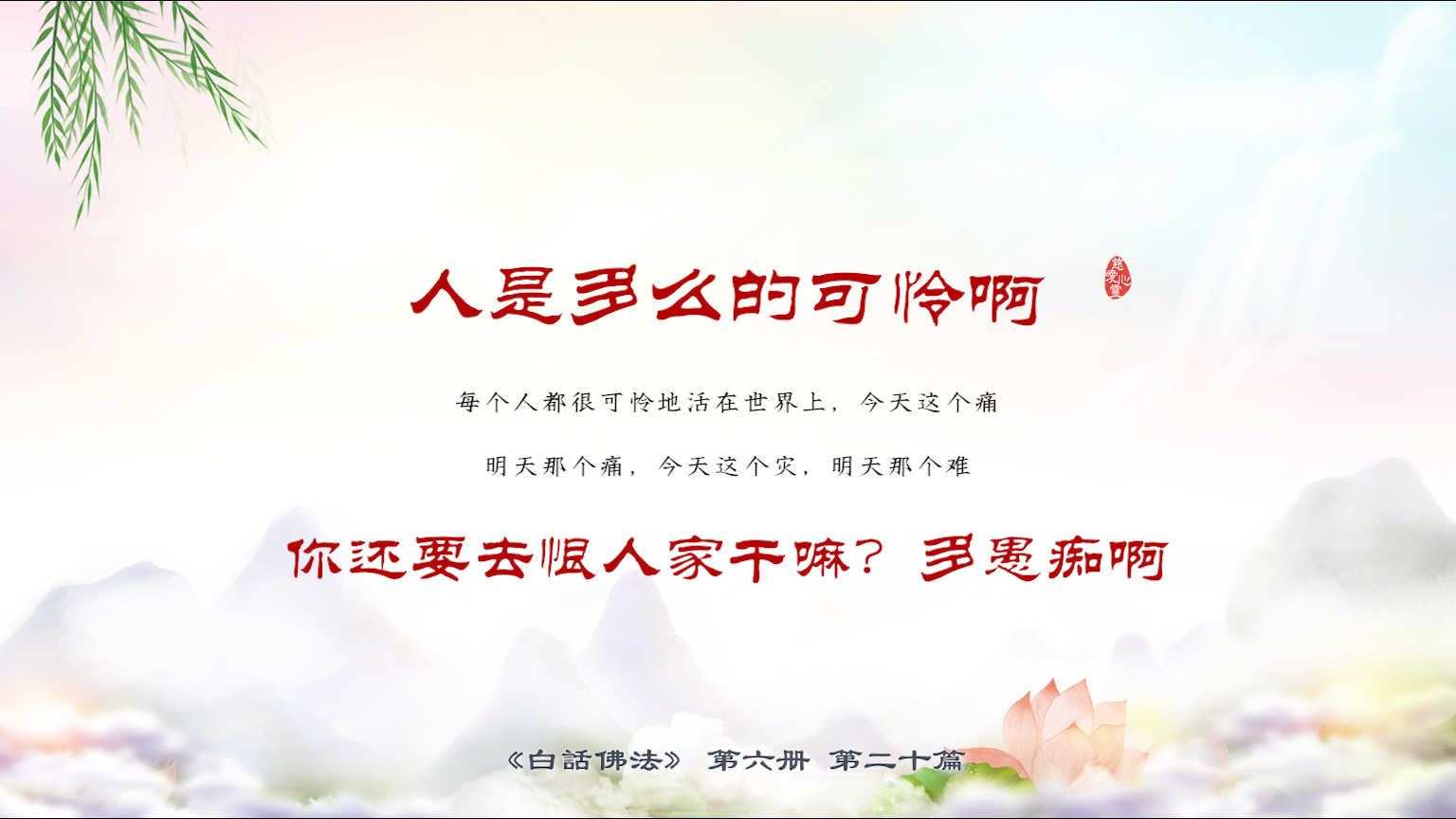不限会员 6-20-12人是多么的可怜啊。每个人都很可怜地活在世界上,今天这个痛,明天那个痛,今天这个灾,明天那个难,你还要去恨人家干嘛?多愚痴啊。【图】