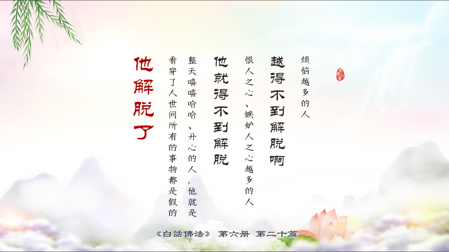不限会员 6-20-22烦恼越多的人,越得不到解脱啊;恨人之心、嫉妒人之心越多的人,他就得不到解脱; 整天嘻嘻哈哈、开心的人,他就是看穿了人世间所有的事物都是假的,他解脱了。【图】