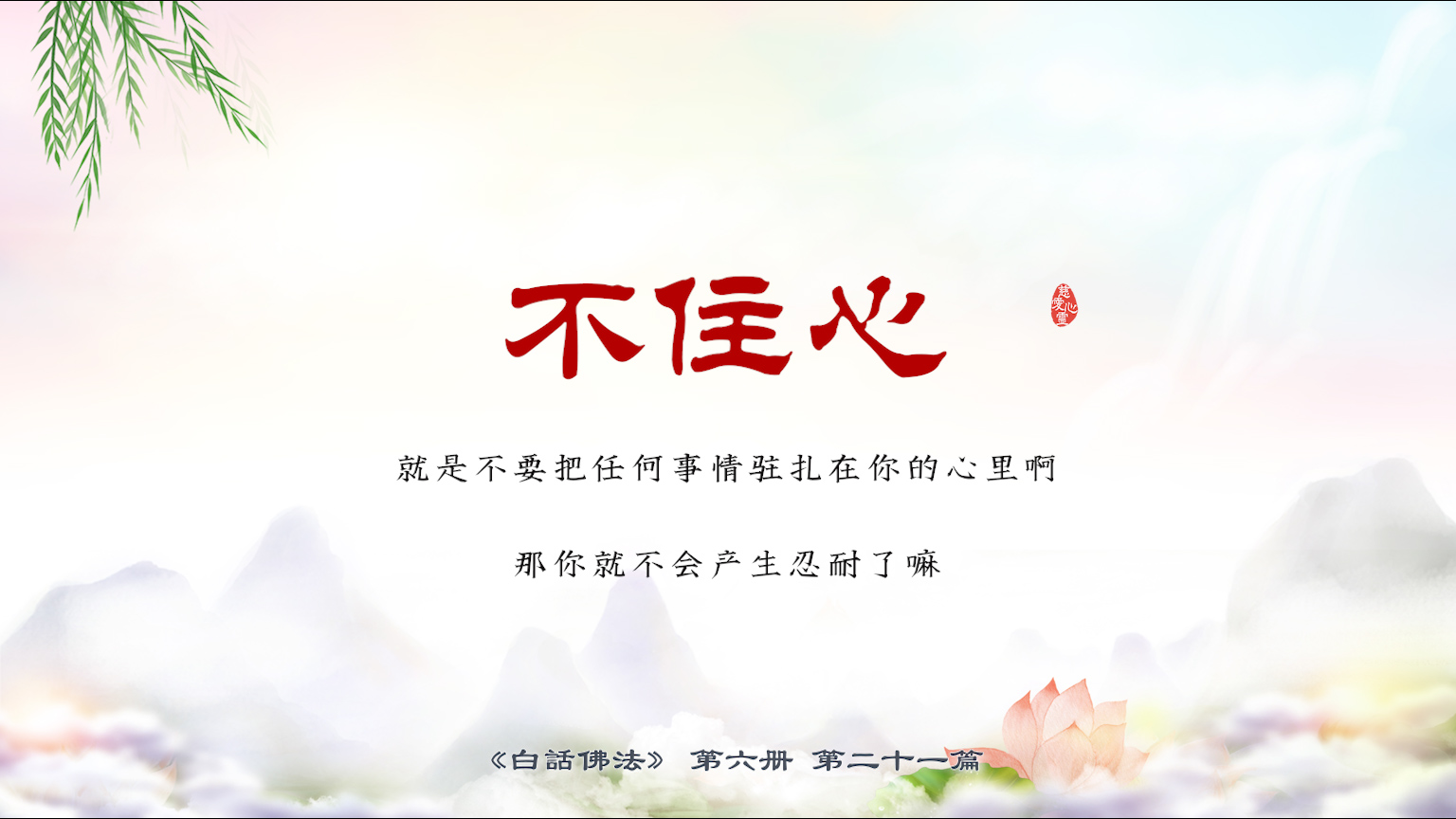 不限会员 6-21-21“不住心”,就是不要把任何事情驻扎在你的心里啊,那你就不会产生忍耐了嘛。【图】