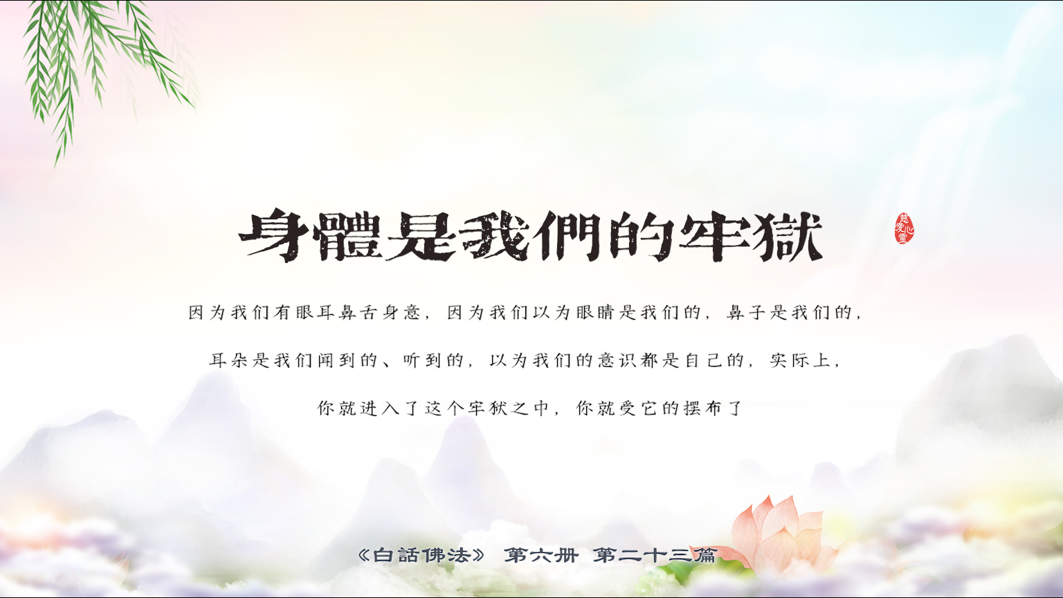 不限会员 6-23-2身体是我们的牢狱,因为我们有眼耳鼻舌身意,因为我们以为眼睛是我们的,鼻子是我们的,耳朵是我们闻到的、听到的,以为我们的意识都是自己的【图】