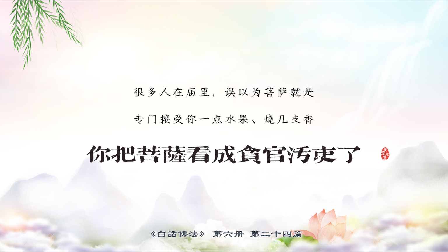不限会员 6-24-11很多人在庙里,误以为菩萨就是专门接受你一点水果、烧几支香,你把菩萨看成贪官污吏了。【图】