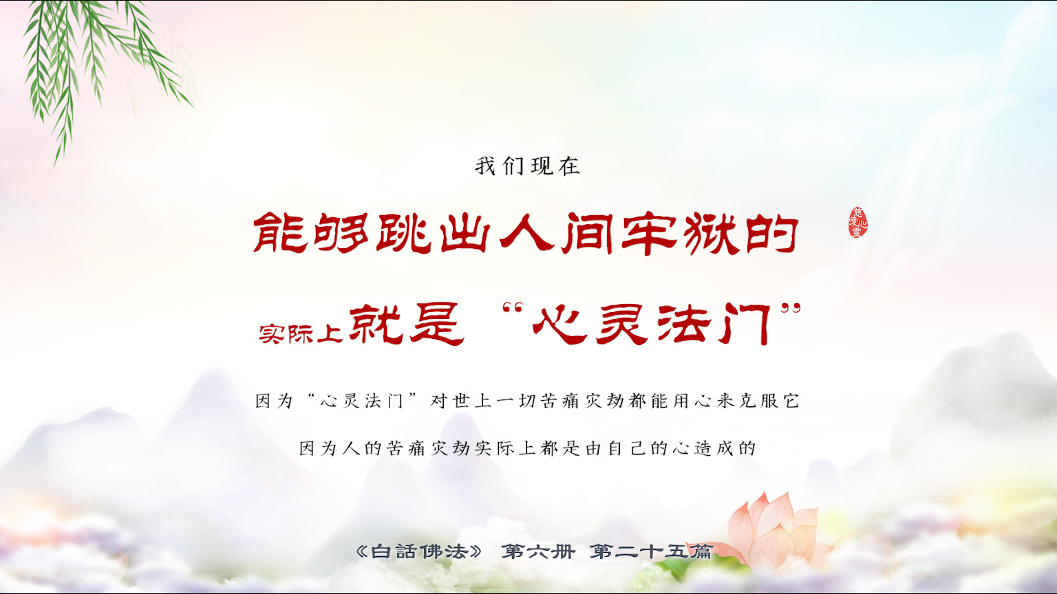 不限会员 6-25-15我们现在能够跳出人间牢狱的实际上就是“心灵法门”,因为“心灵法门”对世上一切苦痛灾劫都能用心来克服它,因为人的苦痛灾劫实际上都是由自己的心造成的。【图】