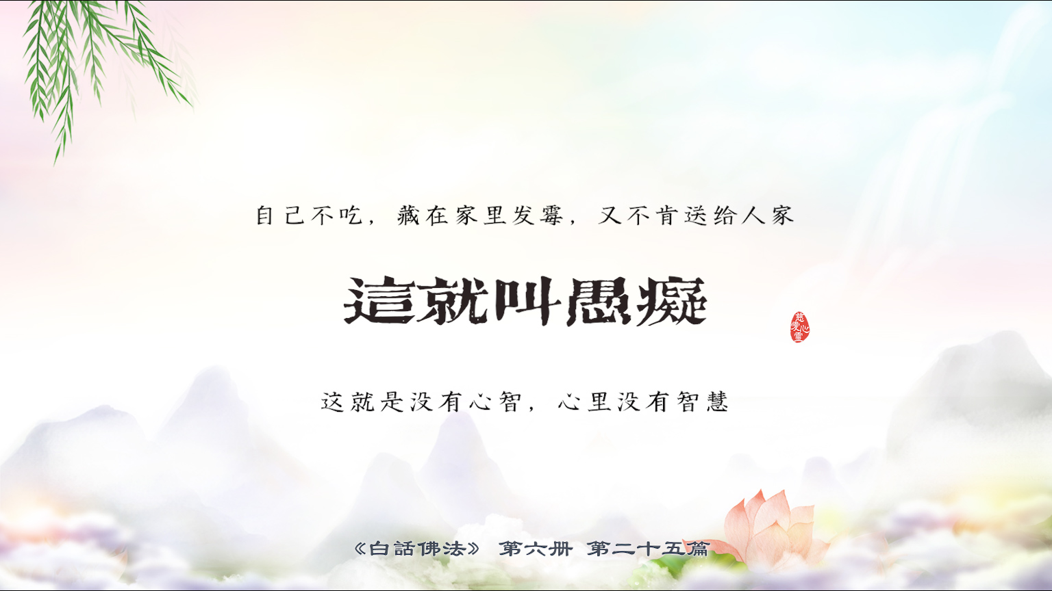 不限会员 6-25-19自己不吃,藏在家里发霉,又不肯送给人家,这就叫愚痴,这就是没有心智,心里没有智慧。【图】