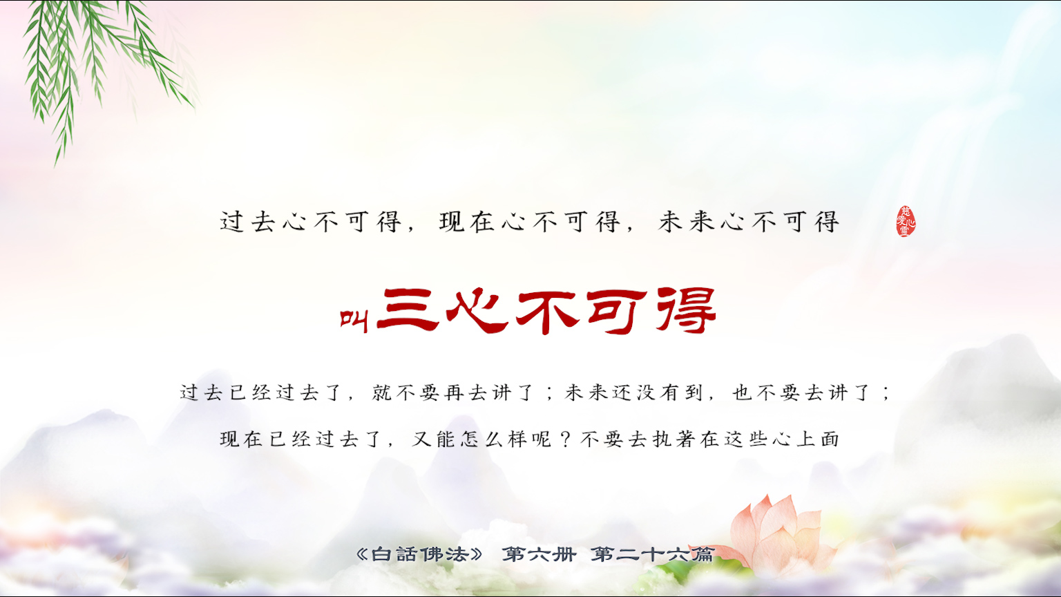 不限会员 6-26-10过去心不可得,现在心不可得,未来心不可得”,叫三心不可得。过去已经过去了,就不要再去讲了;未来还没有到,也不要去讲了;现在已经过去了,又能怎么样呢?【图】