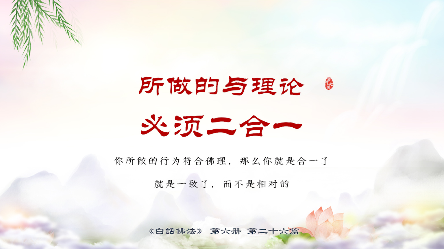 不限会员 6-26-16所做的与理论必须二合一。你所做的行为符合佛理,那么你就是合一了,就是一致了,而不是相对的。【图】