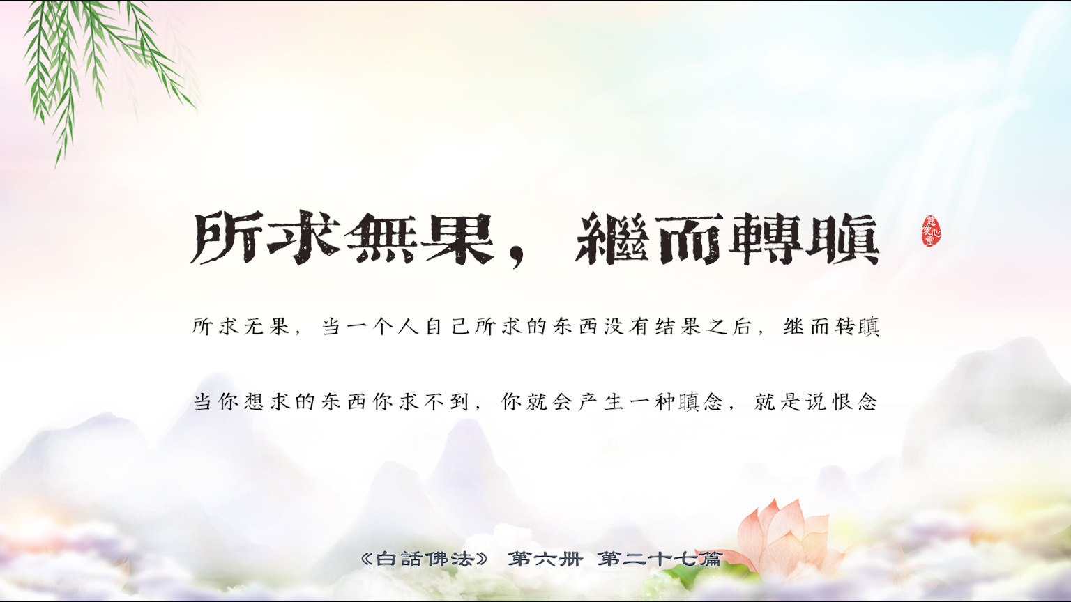 不限会员 6-27-1所求无果,当一个人自己所求的东西没有结果之后,继而转瞋。当你想求的东西你求不到,你就会产生一种瞋念,就是说恨念。【图】
