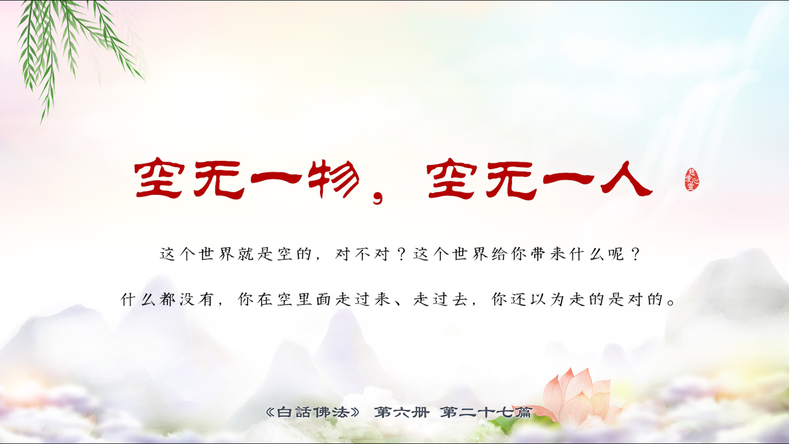 不限会员 6-27-14空无一物,空无一人。这个世界就是空的,对不对?这个世界给你带来什么呢?什么都没有,你在空里面走过来、走过去,你还以为走的是对的。【图】