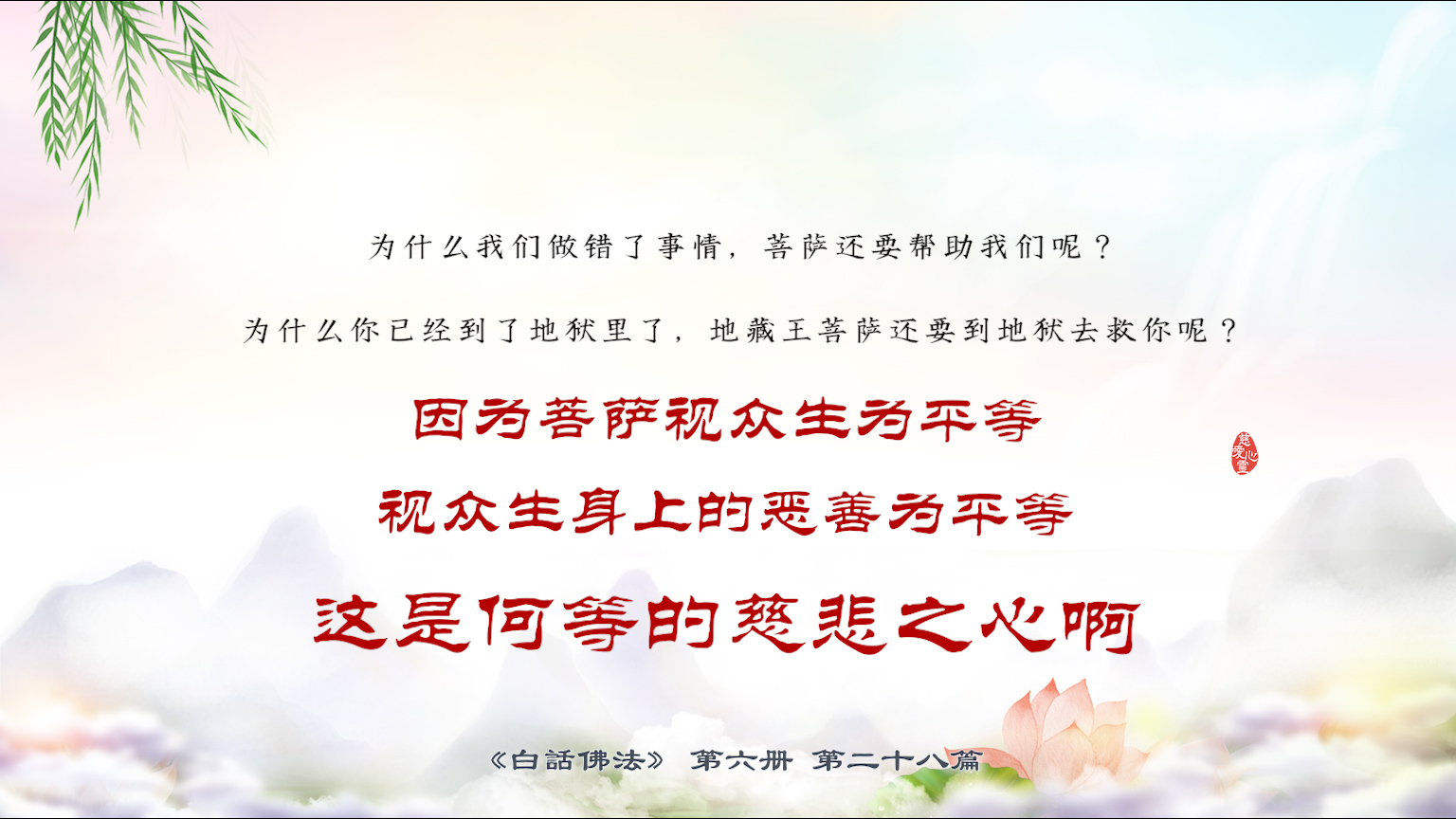 不限会员 6-28-14为什么我们做错了事情,菩萨还要帮助我们呢?为什么你已经到了地狱里了,地藏王菩萨还要到地狱去救你呢?因为菩萨视众生为平等,视众生身上的恶善为平等【图】