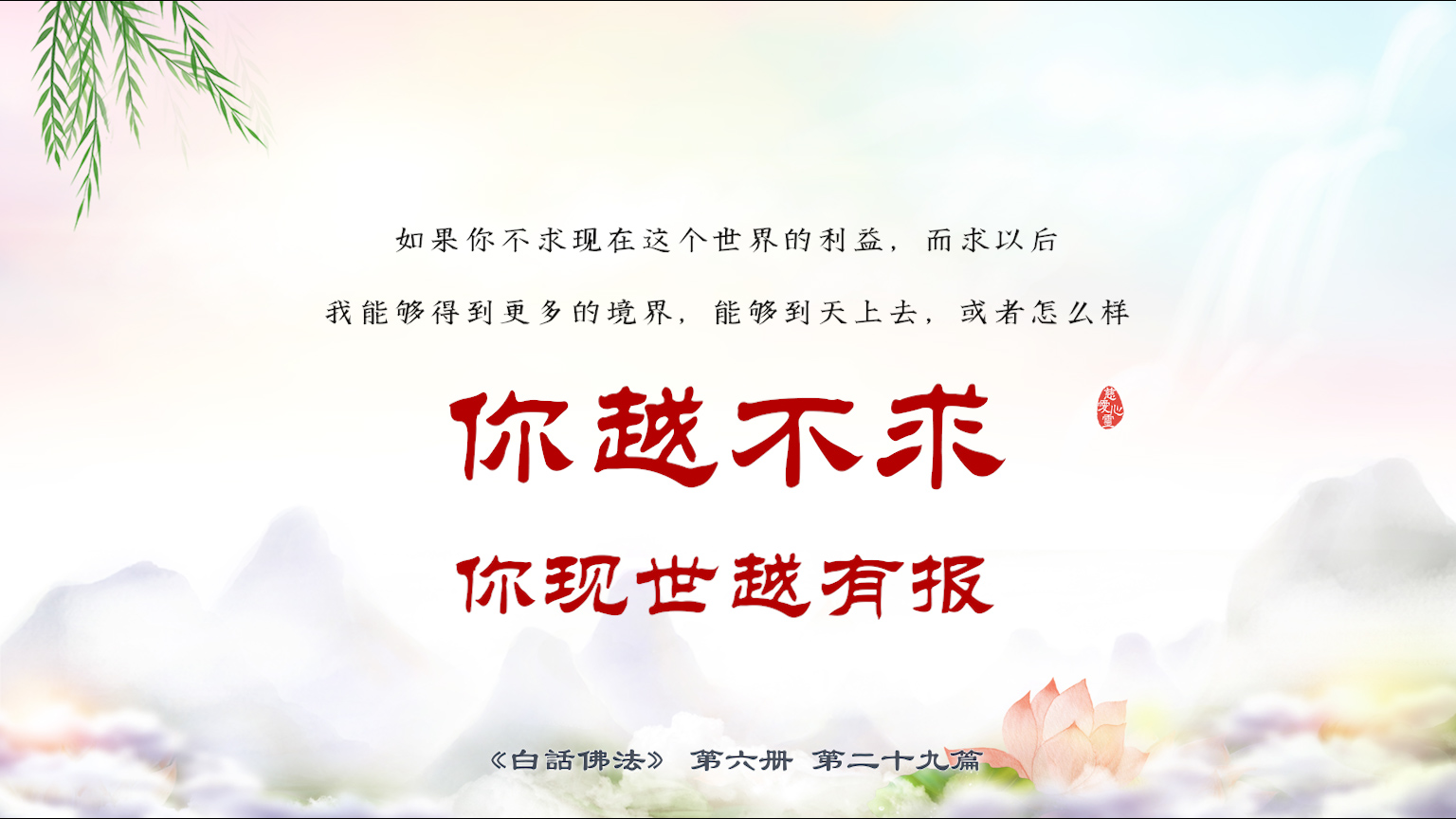 不限会员 6-29-7如果你不求现在这个世界的利益,而求以后我能够得到更多的境界,能够到天上去,或者怎么样,你越不求,你现世越有报。【图】