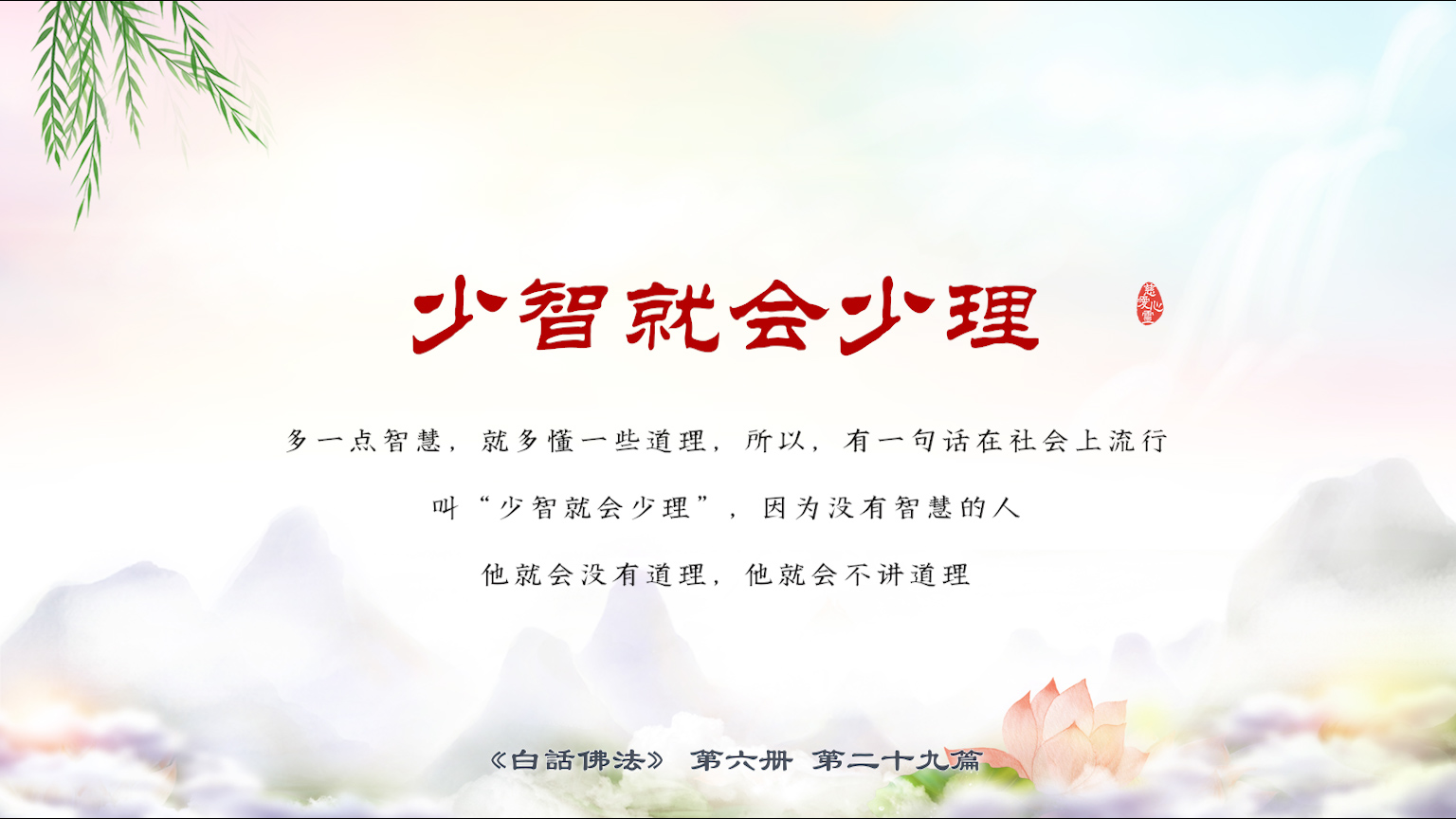不限会员 6-29-23多一点智慧,就多懂一些道理,所以,有一句话在社会上流行,叫“少智就会少理”,因为没有智慧的人,他就会没有道理,他就会不讲道理。【图】