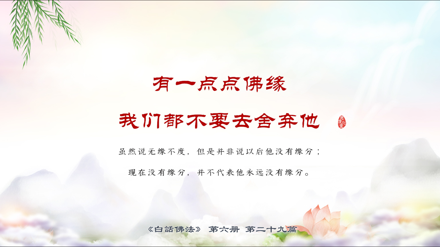 不限会员 6-29-28有一点点佛缘,我们都不要去舍弃他。虽然说无缘不度,但是并非说以后他没有缘分;现在没有缘分,并不代表他永远没有缘分。【图】