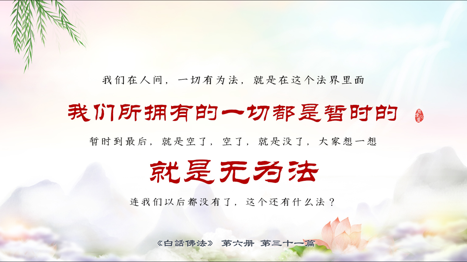 不限会员 6-31-9我们在人间,一切有为法,就是在这个法界里面,我们所 拥有的一切都是暂时的,暂时到最后,就是空了,空了,就是没了,大家想一想,就是无为法【图】