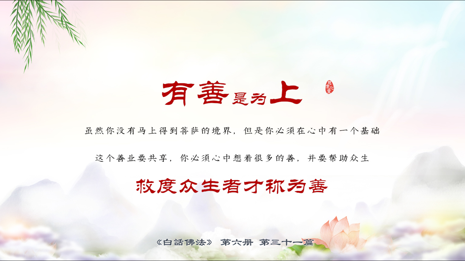不限会员 6-31-15有善是为上,虽然你没有马上得到菩萨的境界,但是你必须在心中有一个基础,这个善业要共享,你必须心中想着很多的善,并要帮助众生,救度众生者才称为善。【图】