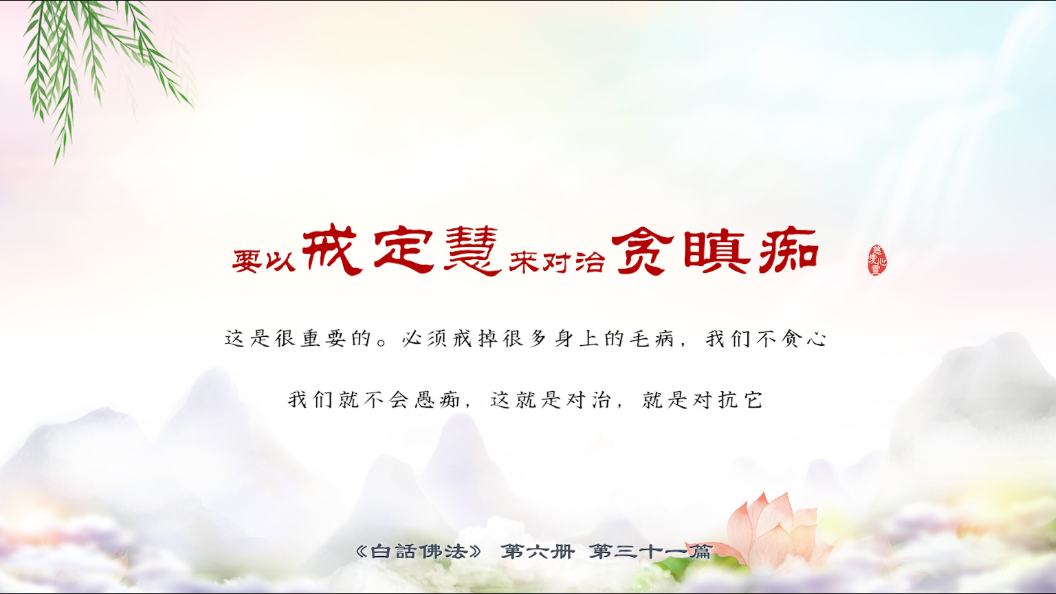 不限会员 6-31-17要以戒定慧来对治贪瞋痴,这是很重要的。必须戒掉很多身上的毛病,我们不贪心,我们就不会愚痴,这就是对治,就是对抗它。【图】