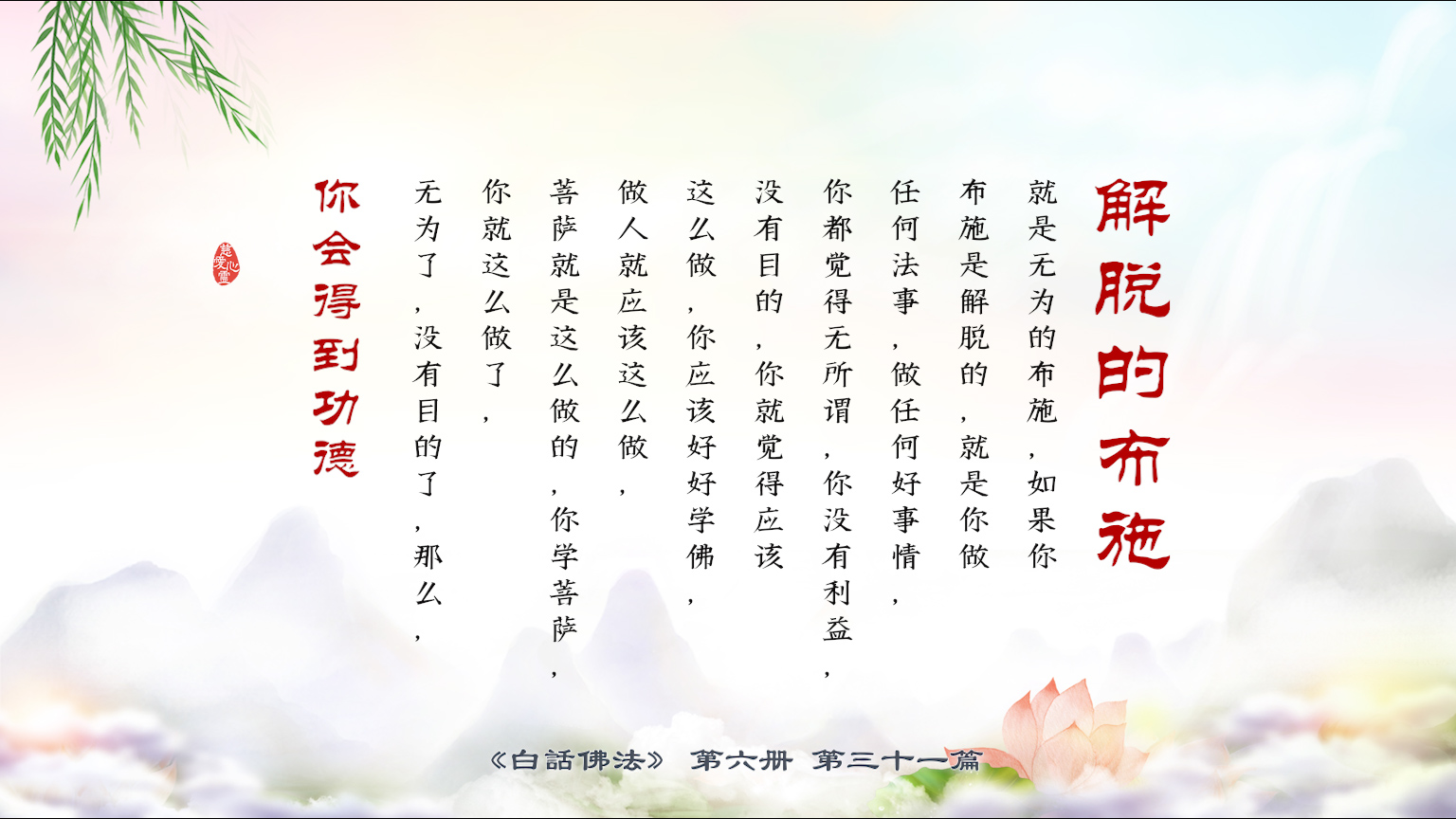 不限会员 6-31-34解脱的布施就是无为的布施,如果你布施是解脱的,就是你做任何法事,做任何好事情,你都觉得无所谓,你没有利益,没有目的,你就觉得应该这么做,你应该好好学佛【图】