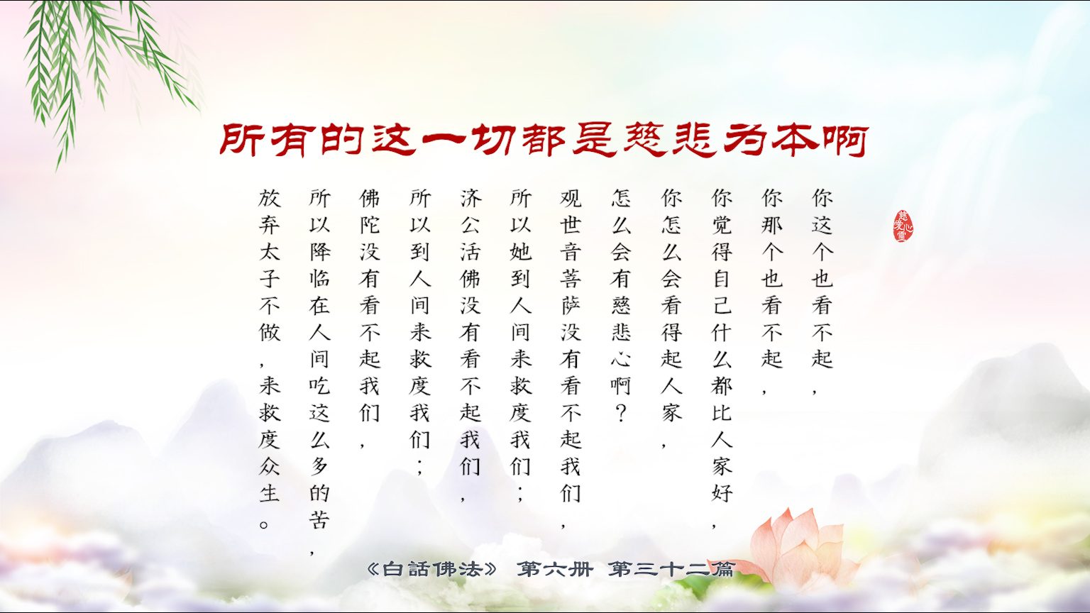 不限会员 6-32-23你这个也看不起,你那个也看不起,你觉得自己什么都比人家好,你怎么会看得起人家,怎么会有慈悲心啊?观世音菩萨没有看不起我们,所以她到人间来救度我们;【图】