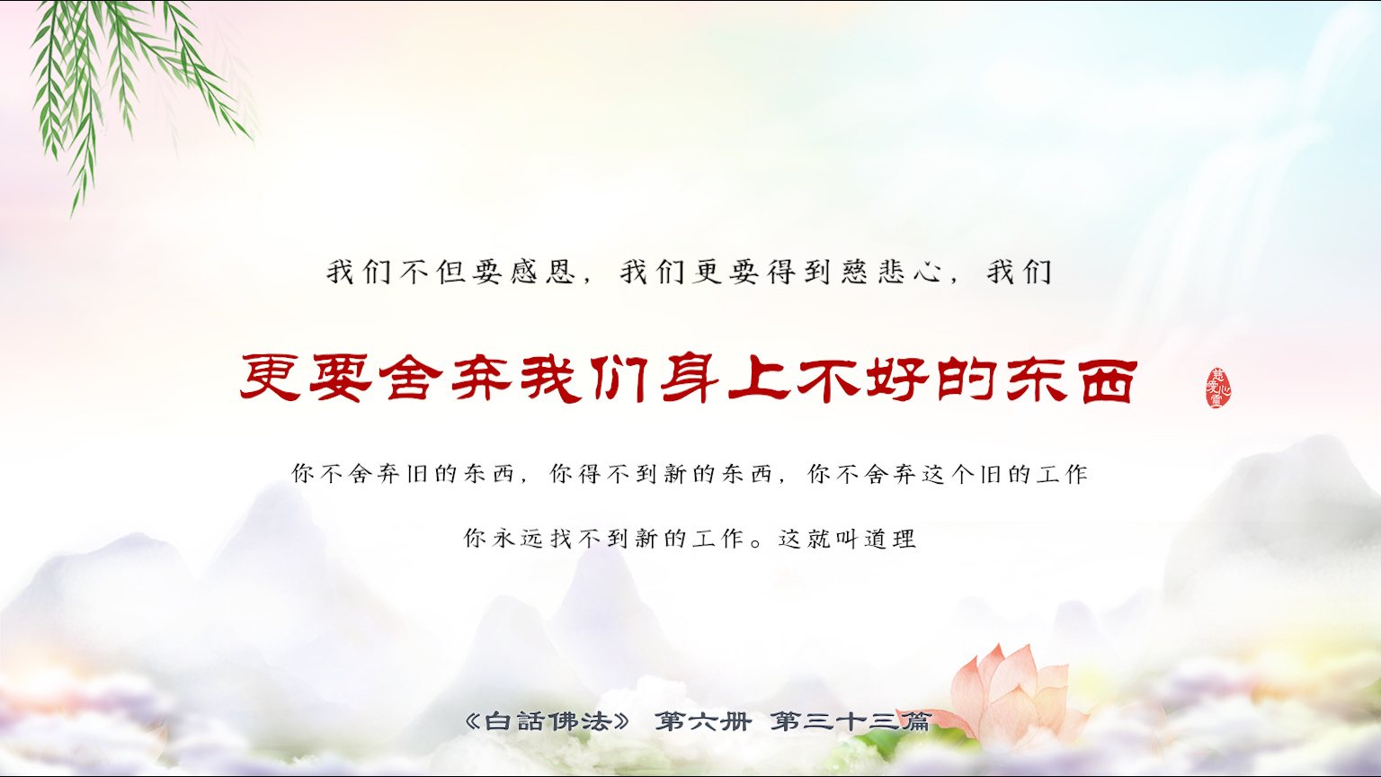 不限会员 6-33-4我们不但要感恩,我们更要得到慈悲心,我们更要舍弃我们身上不好的东西。你不舍弃旧的东西,你得不到新的东西,你不舍弃这个旧的工作,你永远找不到新的工作。这就叫道理。【图】