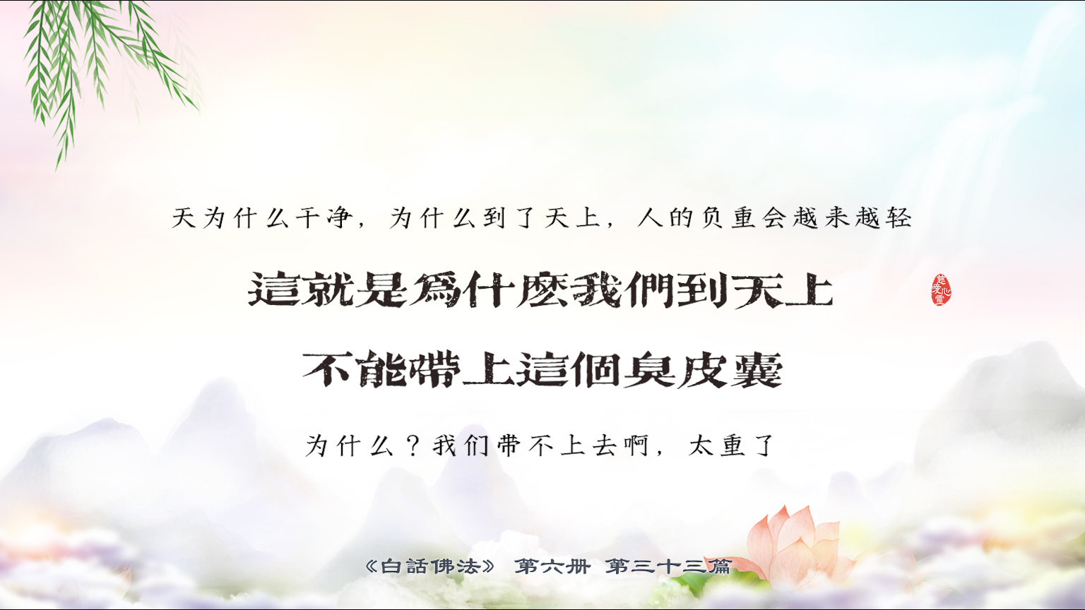 不限会员 6-33-11天为什么干净,为什么到了天上,人的负重会越来越轻,这就是为什么我们到天上不能带上这个臭皮囊,为什么?我们带不上去啊,太重了。【图】