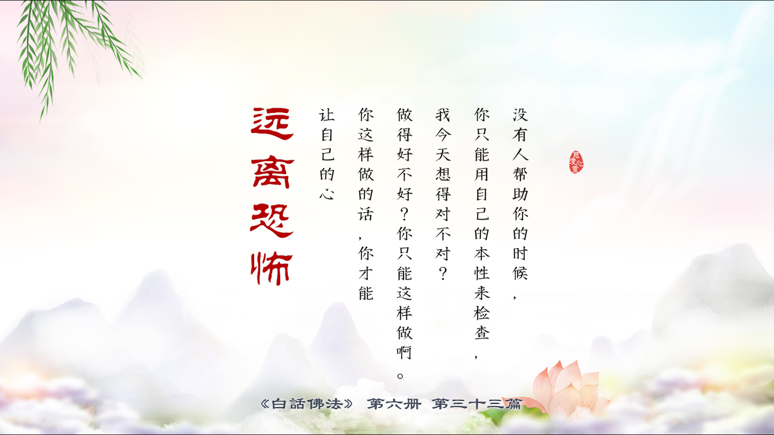 不限会员 6-33-28没有人帮助你的时候,你只能用自己的本性来检查,我今天 想得对不对?做得好不好?你只能这样做啊。你这样做的话,你才能让自己的心远离恐怖。【图】