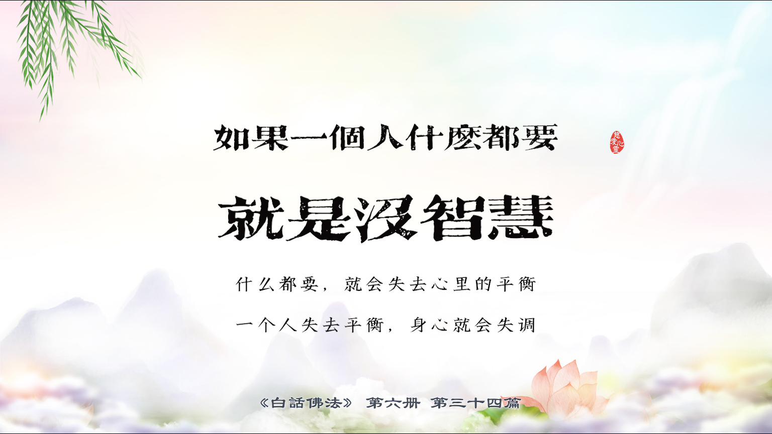 不限会员 6-34-18如果一个人什么都要,就是没智慧;什么都要,就会失去心里的平衡;一个人失去平衡,身心就会失调。【图】