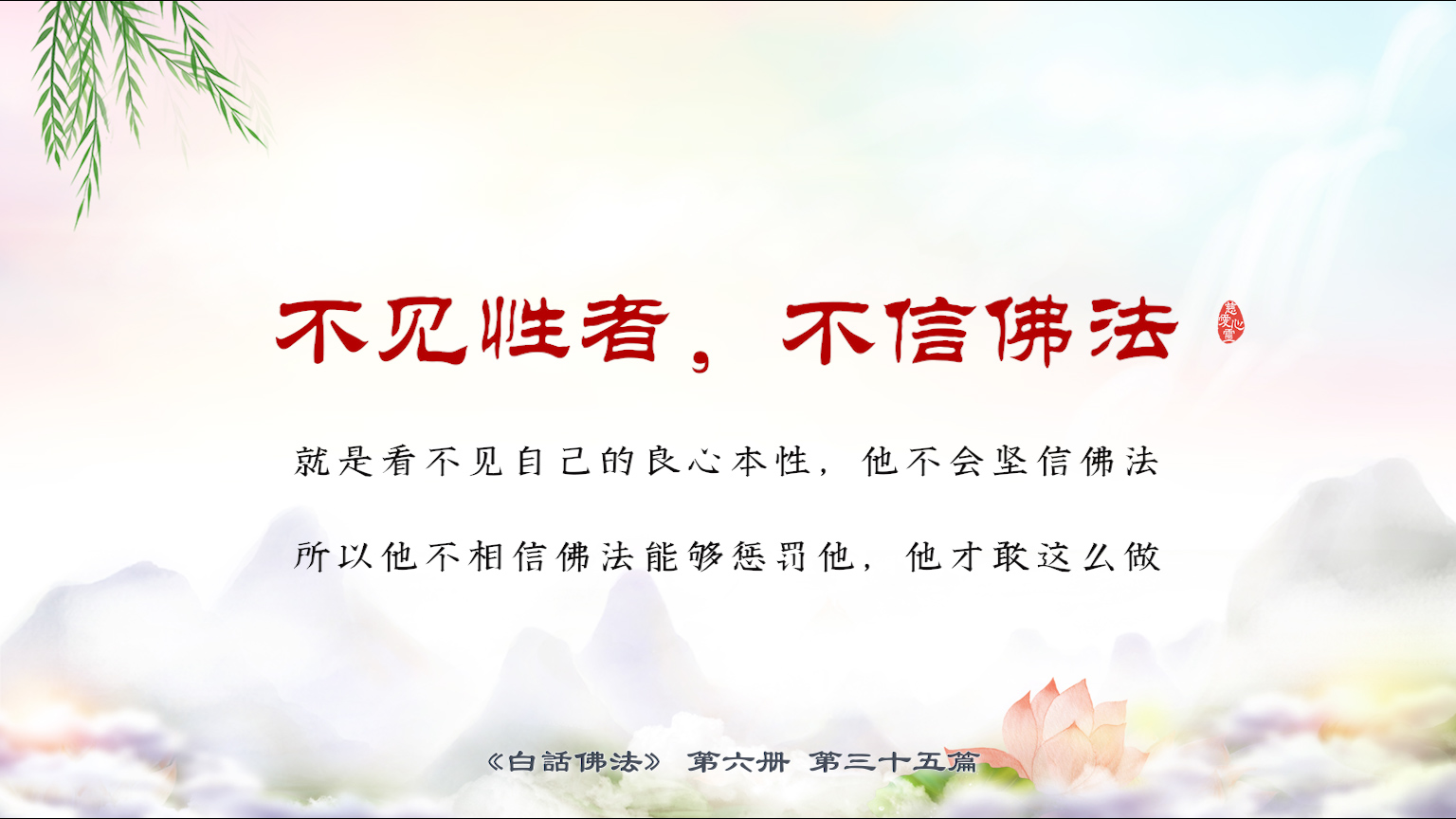 不限会员 6-35-18不见性者,不信佛法。就是看不见自己的良心本性, 他不会坚信佛法,所以他不相信佛法能够惩罚他,他才敢 这么做。【图】