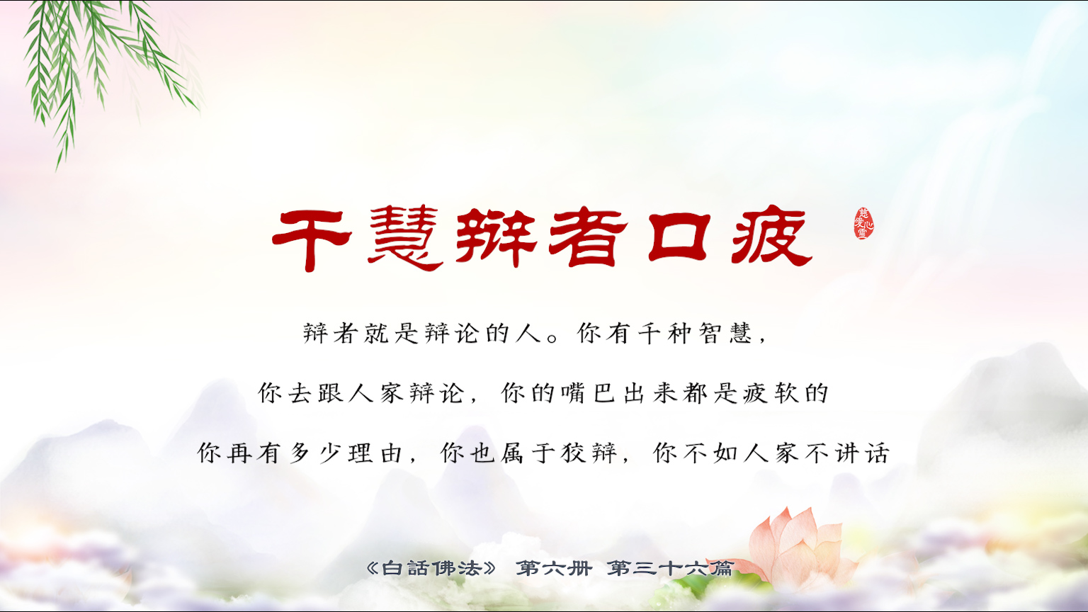 不限会员 6-36-6干慧辩者口疲,辩者就是辩论的人。你有千种智慧,你去跟人家辩论,你的嘴巴出来都是疲软的,你再有多少理由,你也属于狡辩,你不如人家不讲话。【图】