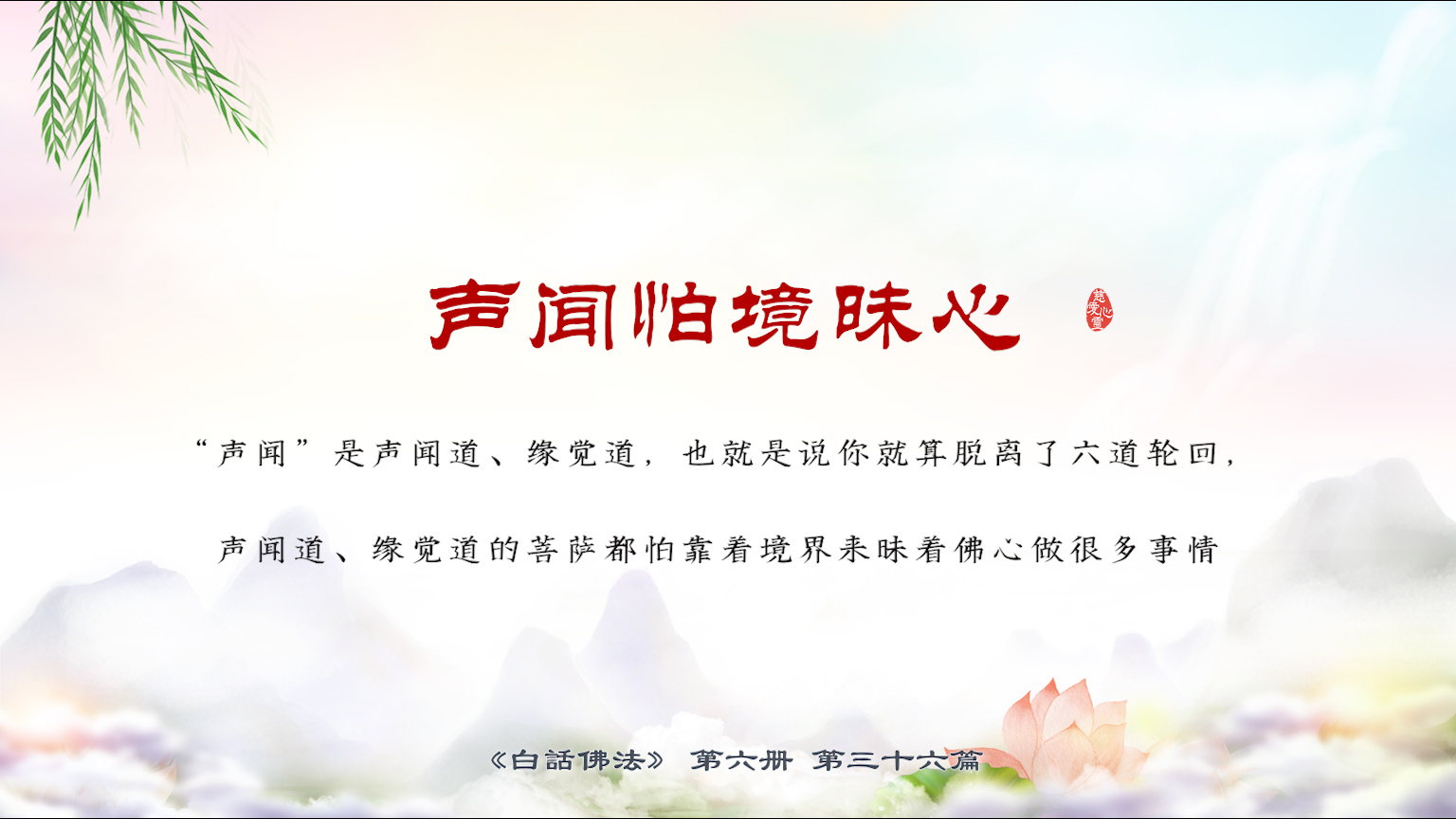 不限会员 6-36-12“声闻怕境昧心”,“声闻”是声闻道、缘觉道,也就是说你就算脱离了六道轮回,声闻道、缘觉道的菩萨都怕靠着境界来昧着佛心做很多事情。【图】
