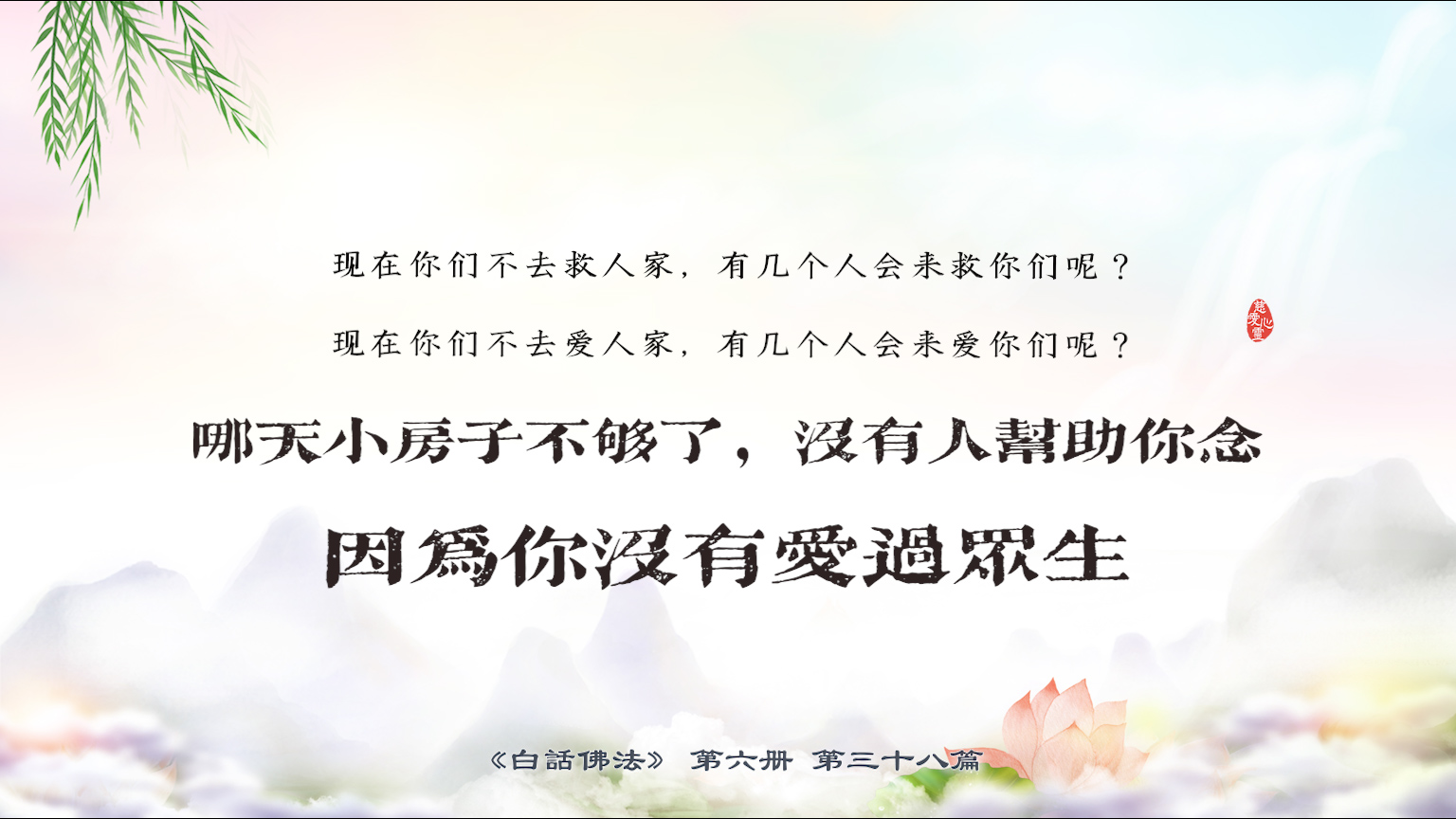 不限会员 6-38-13现在你们不去救人家,有几个人会来救你们呢?现在你们不去爱人家,有几个人会来爱你们呢?哪天小房子不够了,没有人帮助你念,因为你没有爱过众生。【图】