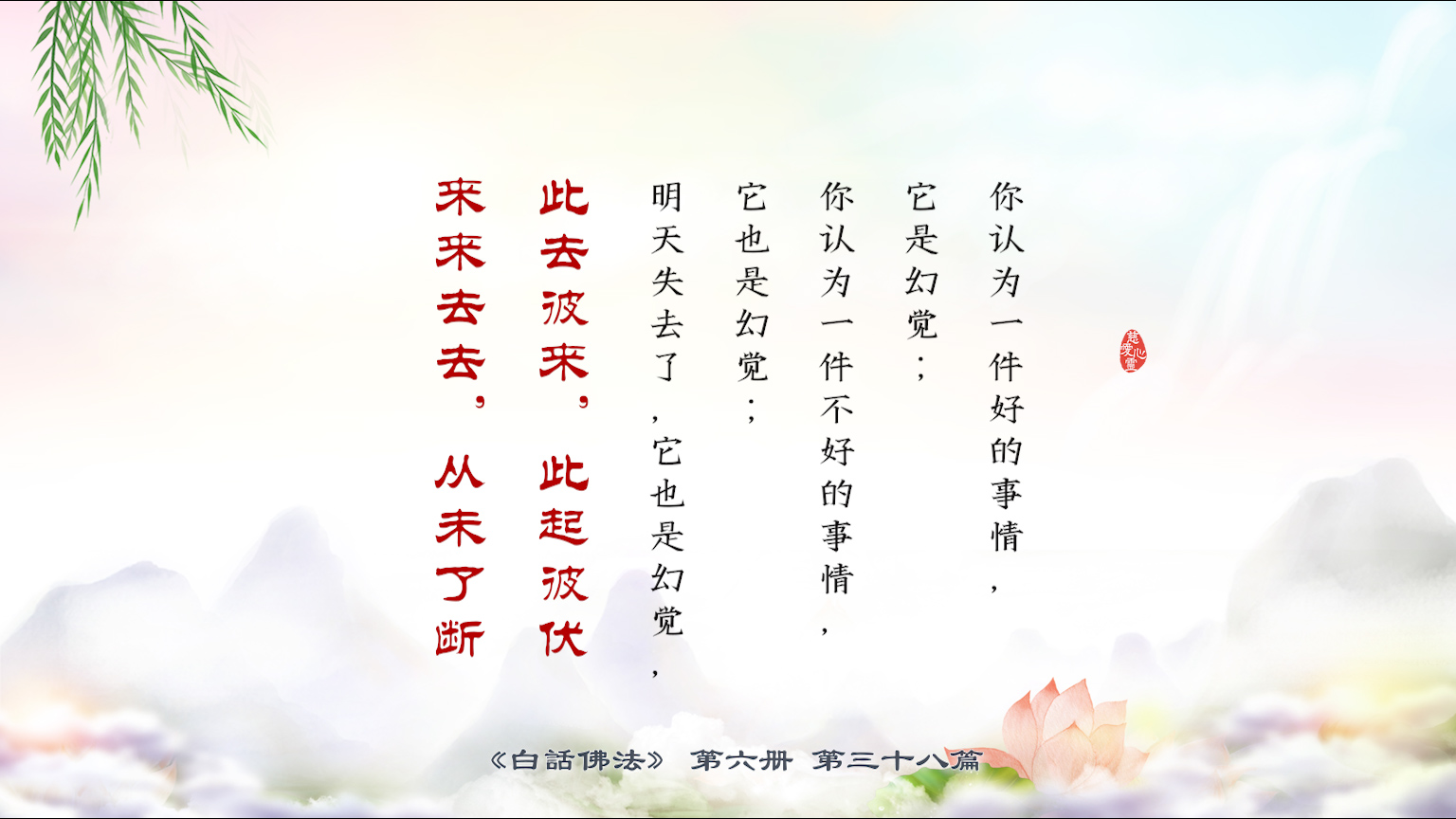 不限会员 6-38-25你认为一件好的事情,它是幻觉;你认为一件不好的事情,它也是幻觉;明天失去了,它也是幻觉,此去彼来,此起彼伏,来来去去,从未了断。【图】