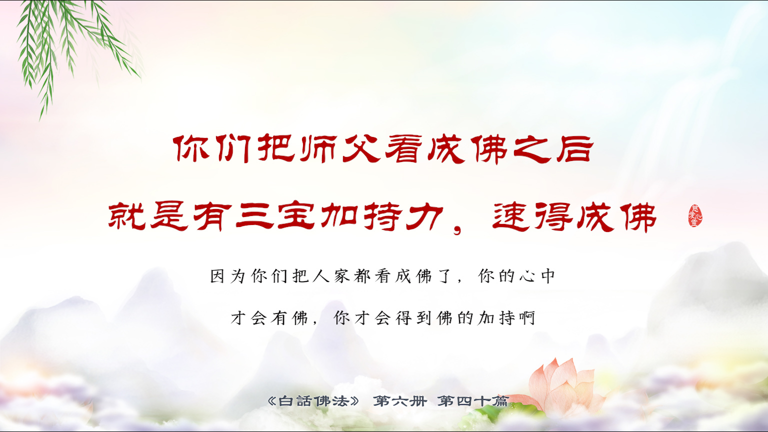 不限会员 6-40-16你们把师父看成佛之后,就是有三宝加持力,速得成佛。因为你们把人家都看成佛了,你的心中才会有佛,你才会得到佛的加持啊。【图】