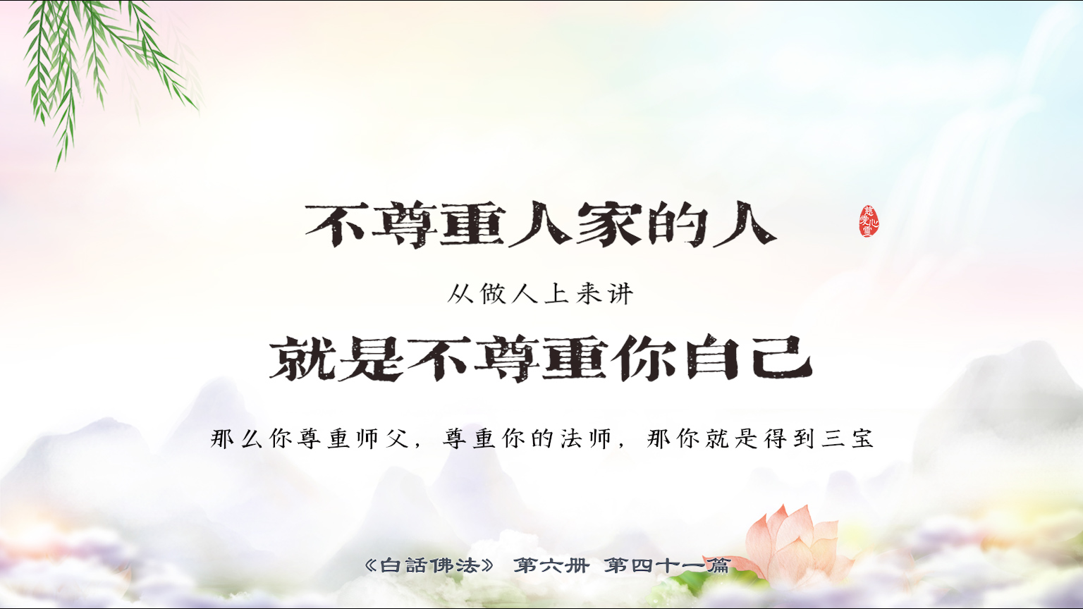 不限会员 6-41-6不尊重人家的人,从做人上来讲,就是不尊重你自己,那么你尊重师父,尊重你的法师,那你就是得到三宝。【图】