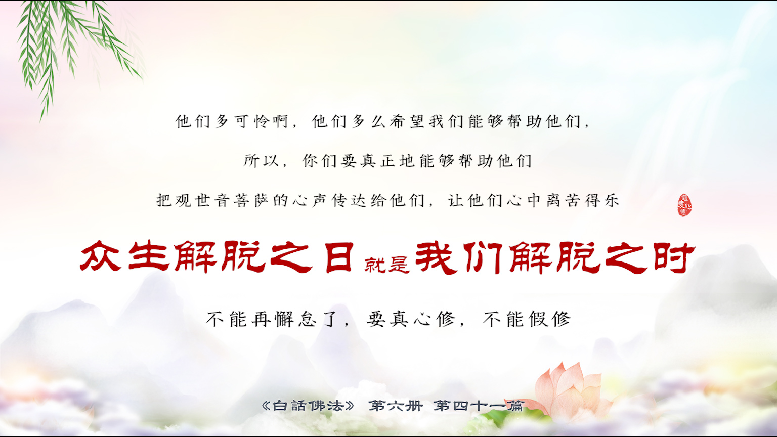 不限会员 6-41-24他们多可怜啊,他们多么希望我们能够帮助他们,所以,你们要真正地能够帮助他们,把观世音菩萨的心声传达给他们,让他们心中离苦得乐,众生解脱之日就是我们解脱之时【图】