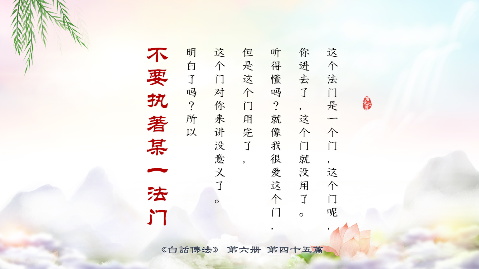 不限会员 6-45-13这个法门是一个门,这个门呢,你进去了,这个门就没用了。听得懂吗?就像我很爱这个门,但是这个门用完了,这个门对你来讲没意义了。明白了吗?所以不要执著某一法门。【图】