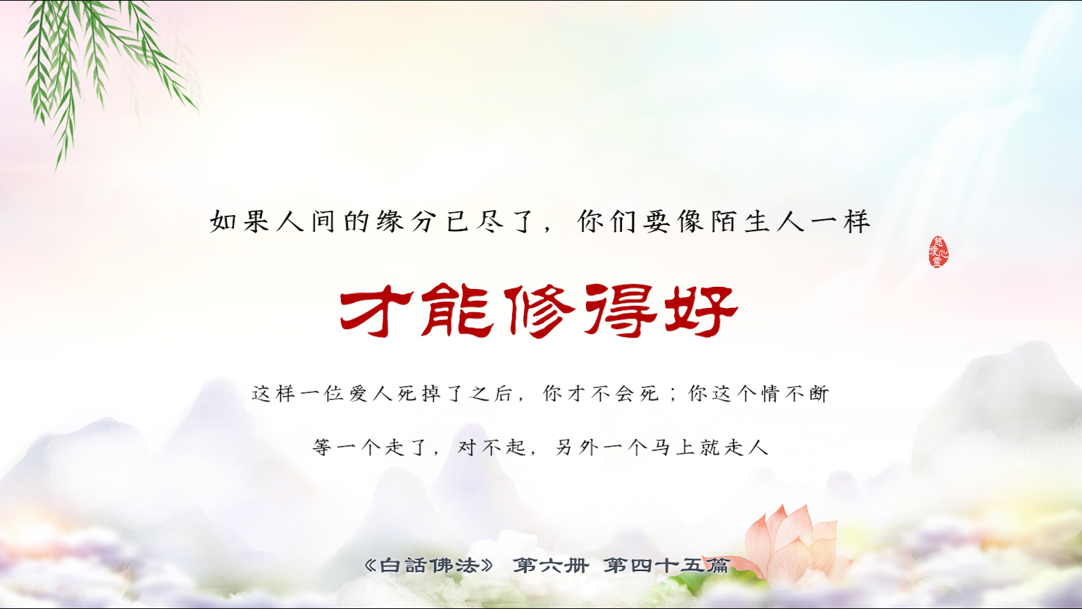 不限会员 6-45-15如果人间的缘分已尽了,你们要像陌生人一样才能修得好,这样一位爱人死掉了之后,你才不会死;你这个情不断,等一个走了,对不起,另外一个马上就走人。【图】