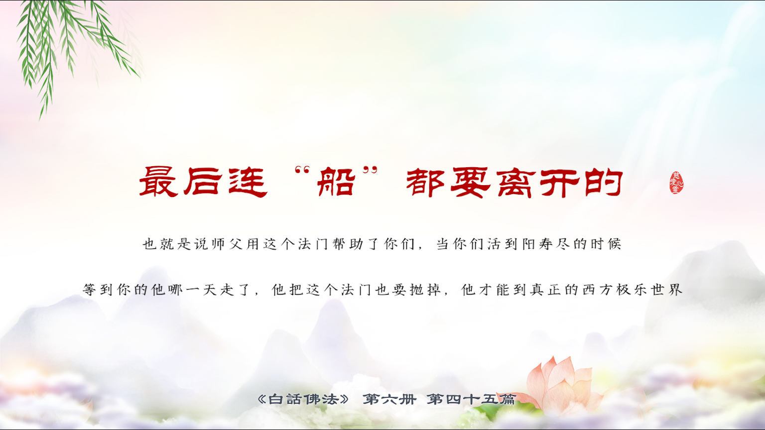 不限会员 6-45-18最后连“船”都要离开的,也就是说师父用这个法门帮助了你们,当你们活到阳寿尽的时候,等到你的他哪一天走了,他把这个法门也要抛掉,他才能到真正的西方极乐世界。【图】