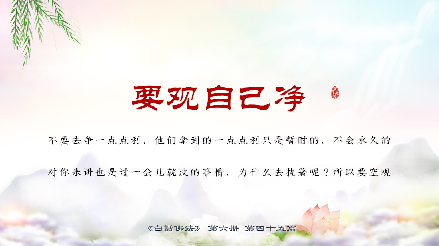 不限会员 6-45-35要观自己净,不要去争一点点利,他们拿到的一点点利只是暂时的,不会永久的,对你来讲也是过一会儿就没的事情,为什么去执著呢?所以要空观。【图】