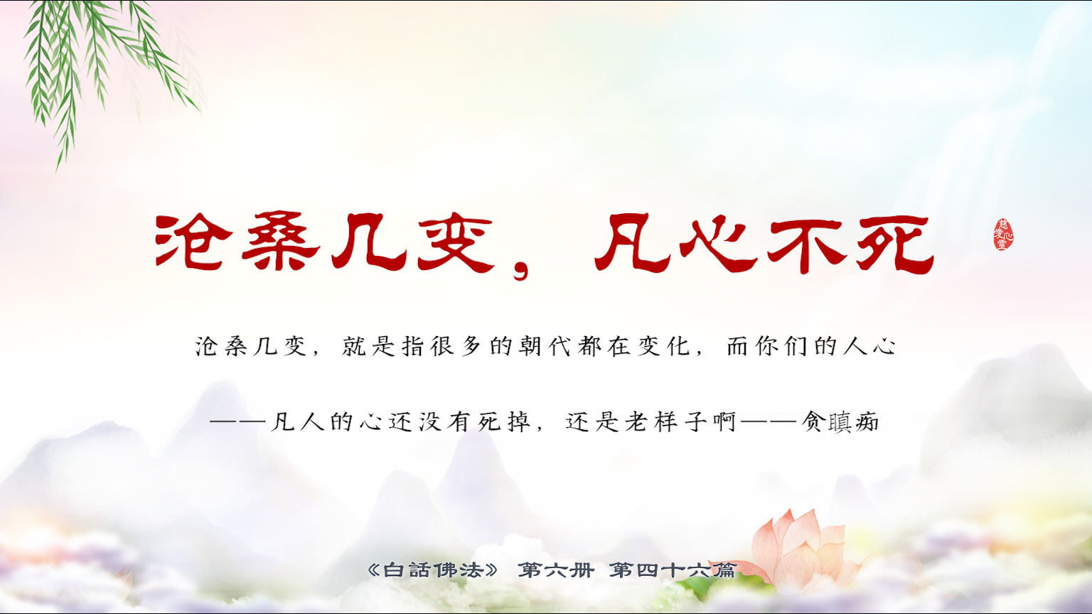 不限会员 6-46-16沧桑几变,凡心不死啊。沧桑几变,就是指很多的朝代都在变化,而你们的人心——凡人的心还没有死掉,还是老样子啊——贪瞋痴。【图】