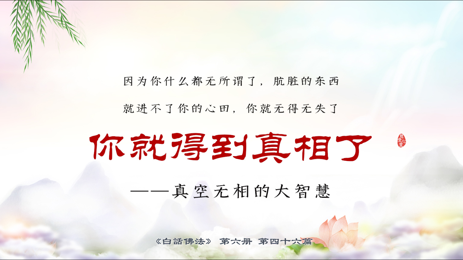 不限会员 6-46-24因为你什么都无所谓了,肮脏的东西就进不了你的心田,你就无得无失了,你就得到真相了——真空无相的大智慧。【图】
