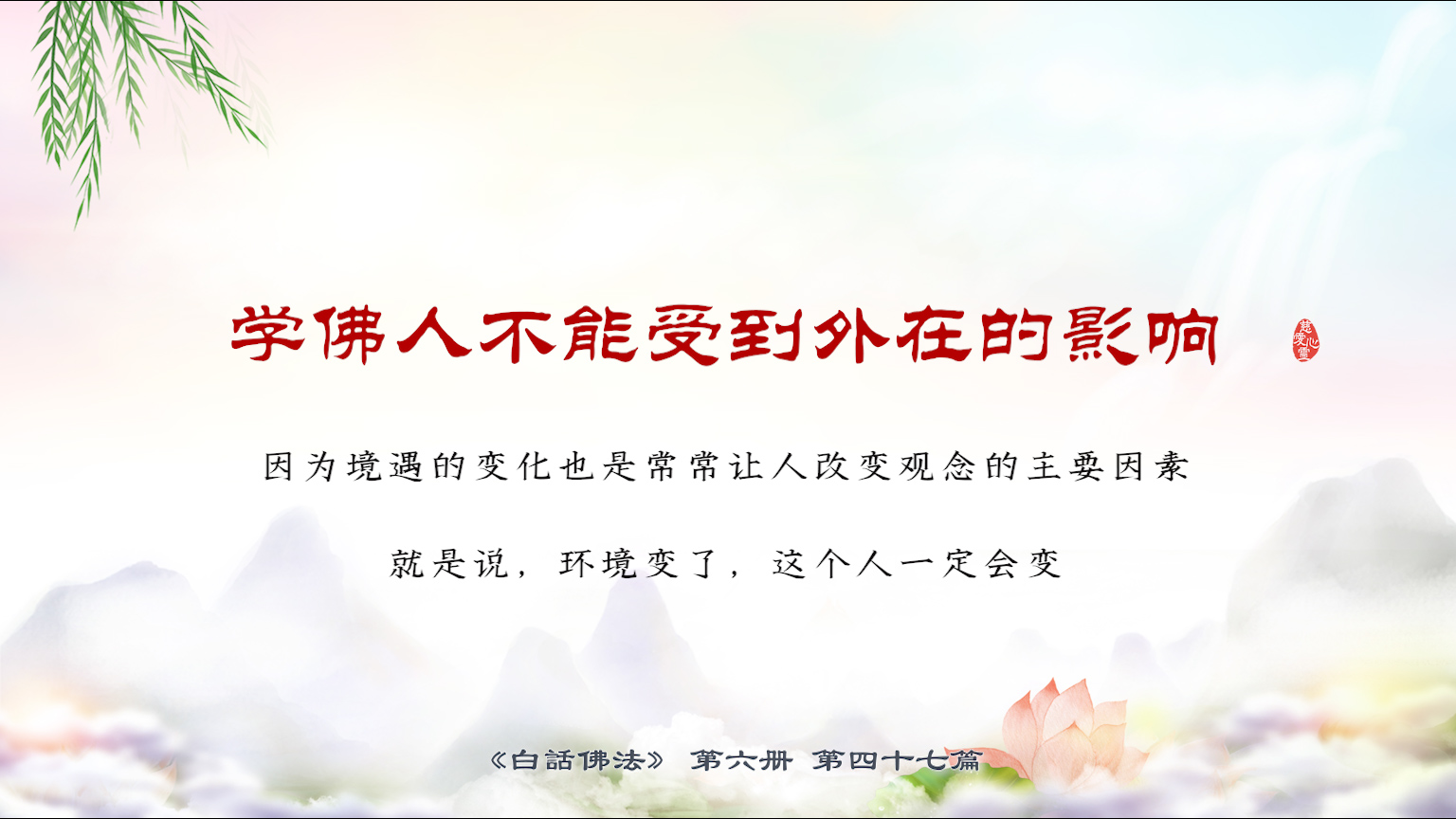 不限会员 6-47-13学佛人不能受到外在的影响,因为境遇的变化也是常常让人改变观念的主要因素。就是说,环境变了,这个人一定会变。【图】