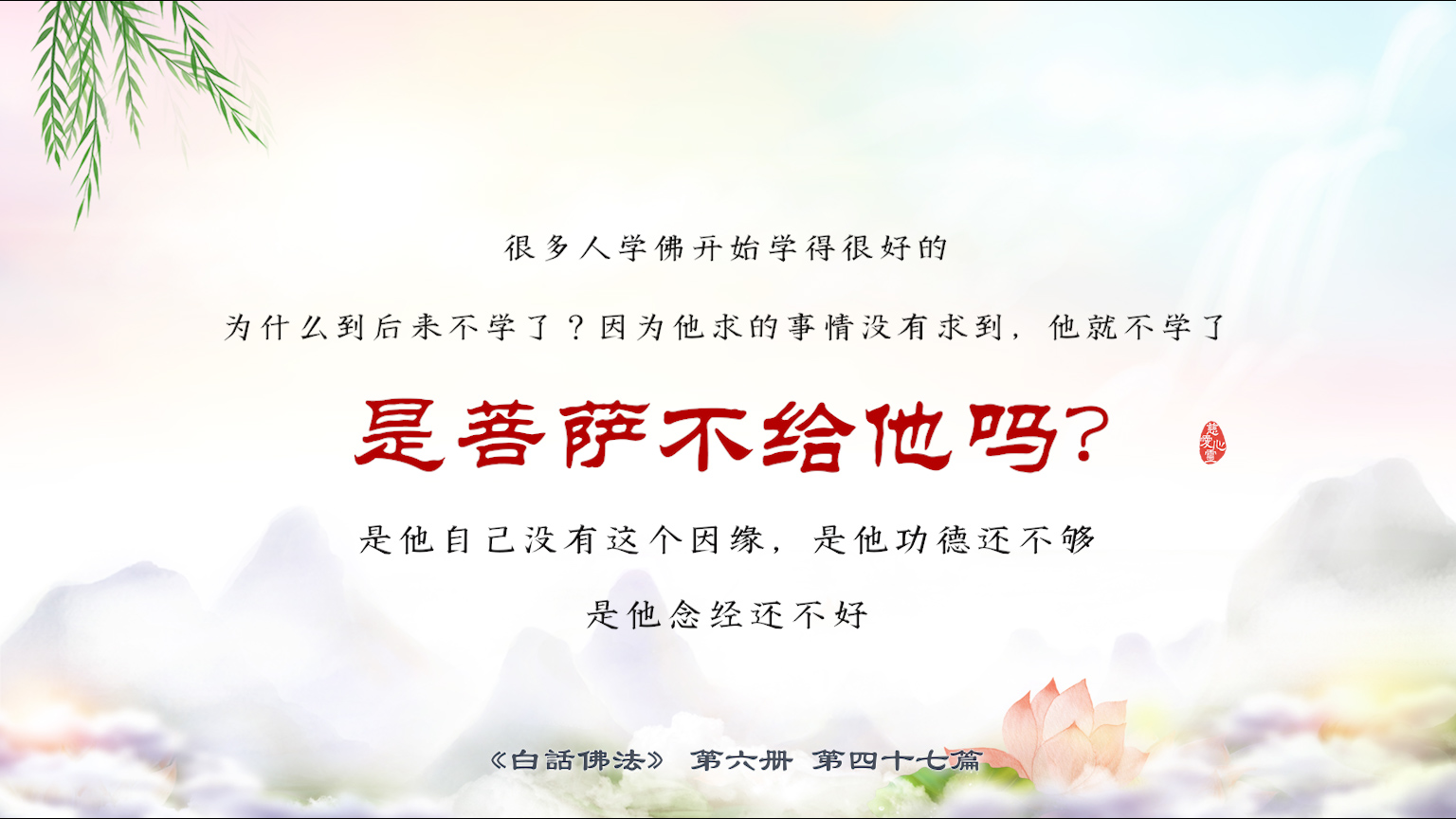 不限会员 6-47-14很多人学佛开始学得很好的,为什么到后来不学了?因为他求的事情没有求到,他就不学了。是菩萨不给他吗?是他自己没有这个因缘,是他功德还不够,是他念经还不好。【图】