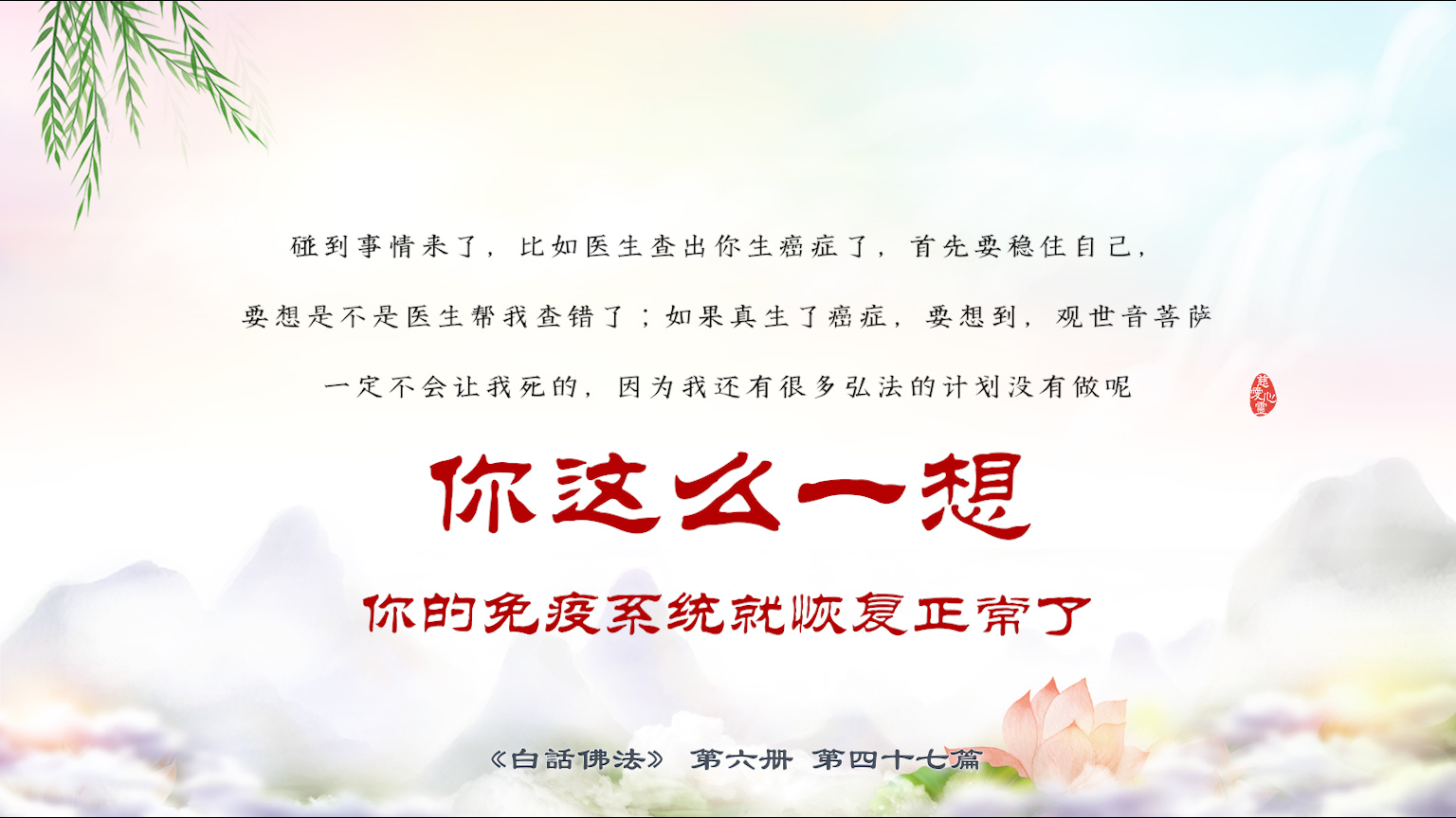 不限会员 6-47-18碰到事情来了,比如医生查出你生癌症了,首先要稳住自己,要想是不是医生帮我查错了;如果真生了癌症,要想到,观世音菩萨一定不会让我死的【图】