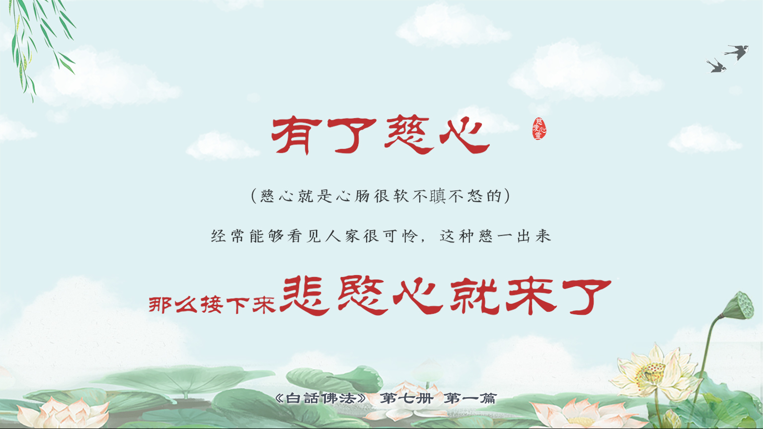 不限会员 7-1-2 有了慈心(慈心就是心肠很软不瞋不怒的),经常能够看见人家很可怜,这种慈一出来,那么接下来悲愍心就来了。【图】