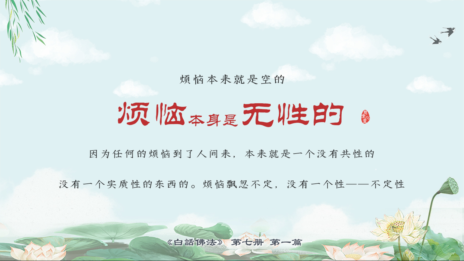不限会员 7-1-16 烦恼本来就是空的,烦恼本身是无性的。什么叫烦恼本身是无性的?因为任何的烦恼到了人间来,本来就是一个没有共性的,没有一个实质性的东西的。【图】