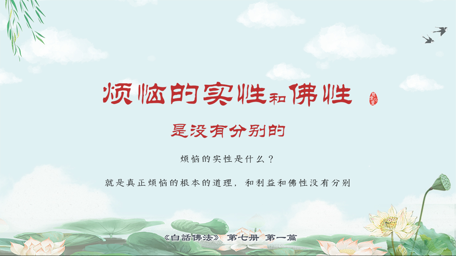 不限会员 7-1-27 烦恼的实性和佛性是没有分别的。烦恼的实性是什么?就是真正烦恼的根本的道理,和利益和佛性没有分别。因为你过去有佛性,但是你经过累世的积累,【图】