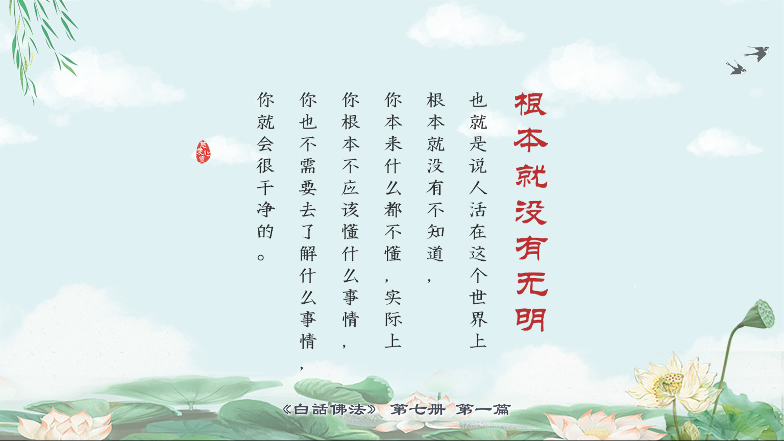 下一篇 : 7-1-33 本来这个世界就没有无明的(无明就是不明白、不懂