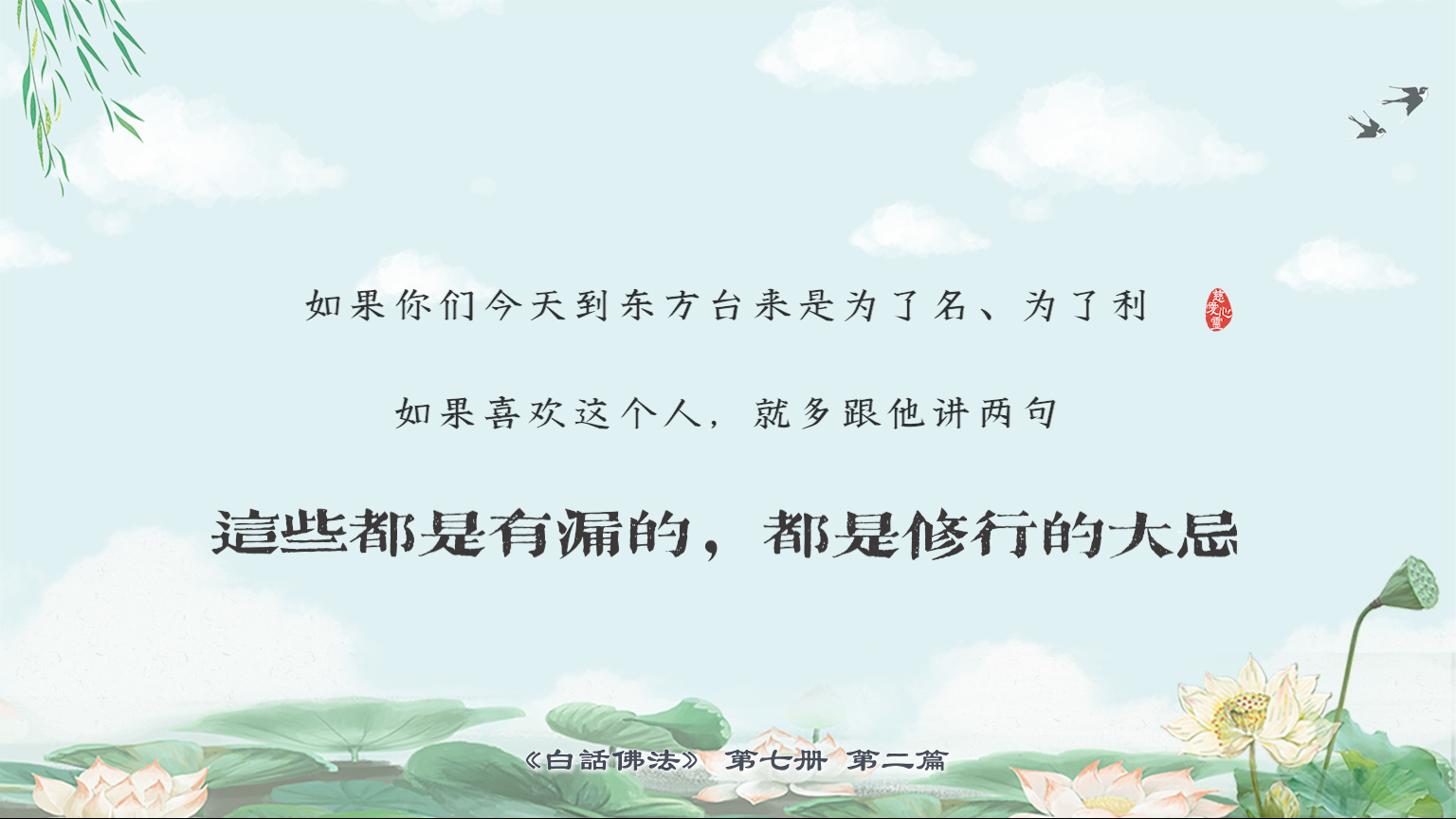 不限会员 7-2-4如果你们今天到东方台来是为了名、为了利,如果喜欢这个人,就多跟他讲两句,这些都是有漏的,都是修行的大忌。【图】