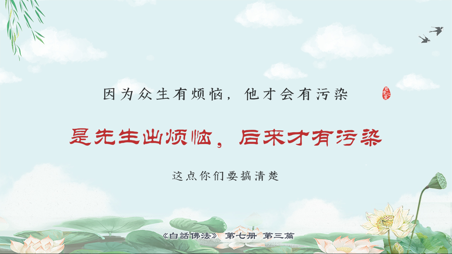 不限会员 7-3-18 因为众生有烦恼,他才会有污染。是先生出烦恼,后来才有污染,这点你们要搞清楚。【图】